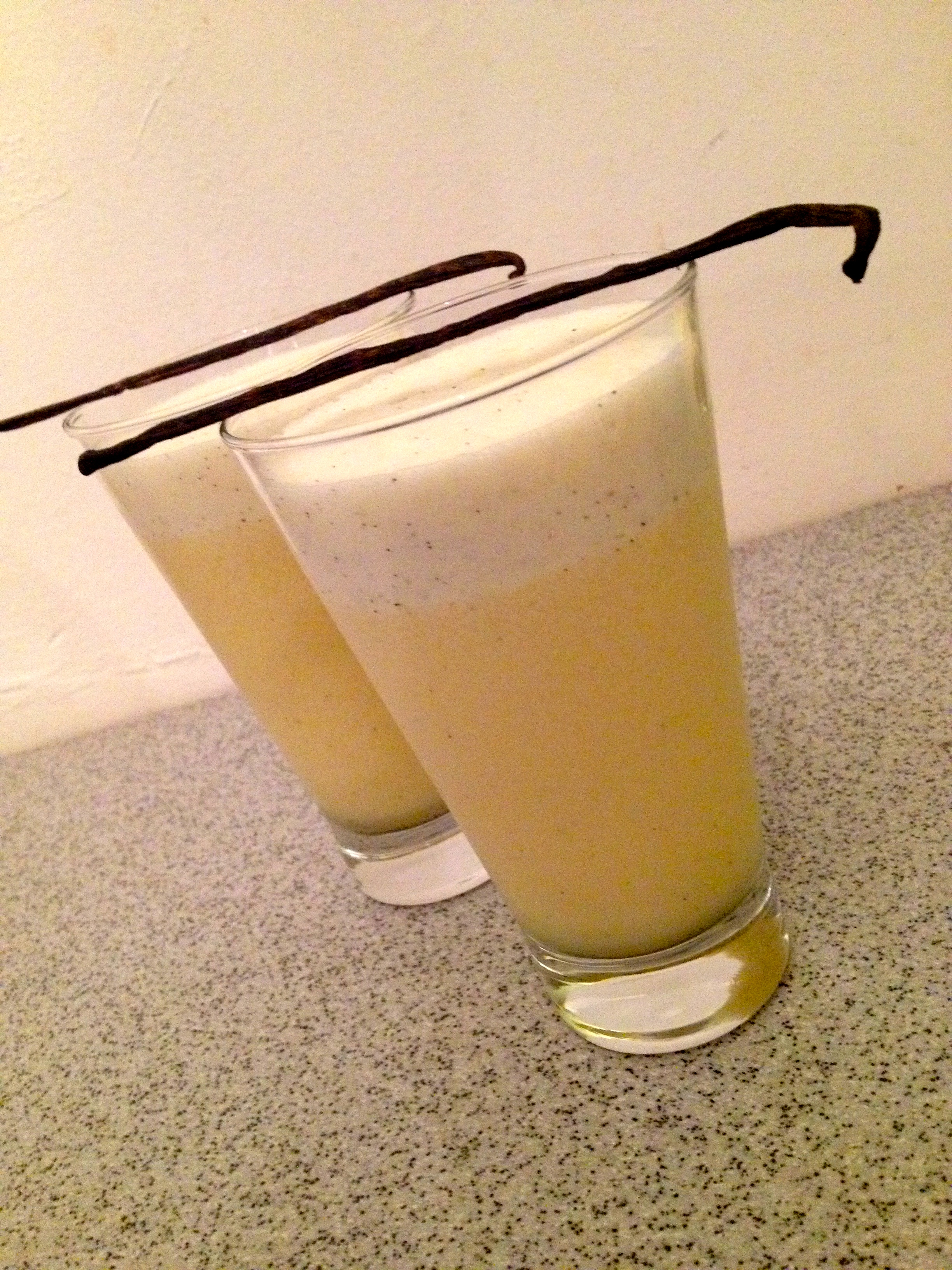 - Couper la vanille en deux dans le sens de la longueur, gratter avec la pointe d’un couteau pour en extraire les graines et mettre dans le blender