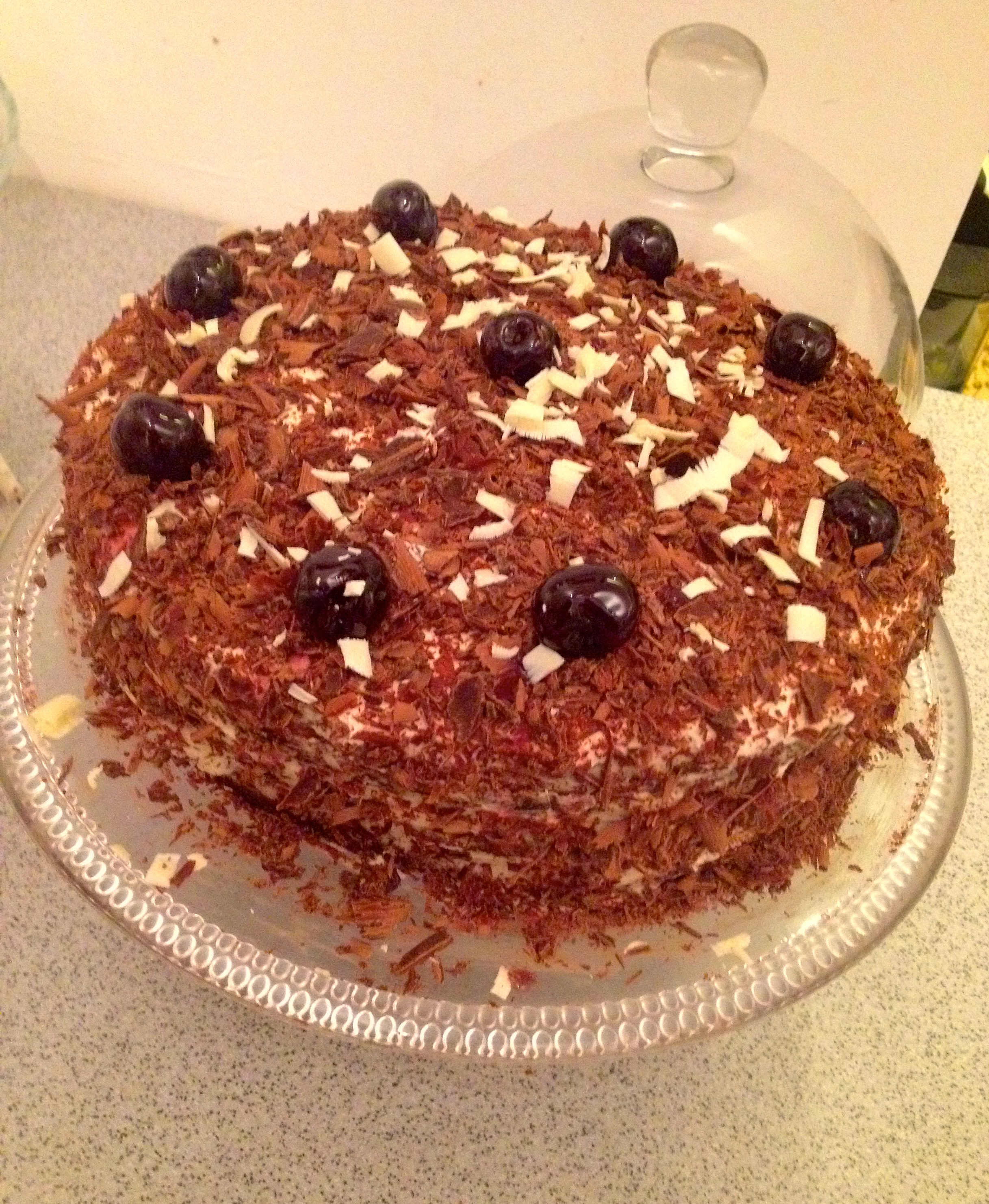 Black Forest Society (nouveau bon bar à cocktails bavarois à Lyon) + Black Forest Cake (Gâteau Forêt-noire pour Goûter Viennois entre Yelpeurs Elite) = Me Very In Love ! J’ai voulu récidiver chez moi et faire profiter de l’expérience aux copains (je suis comme ça!). Et comme le patron l’a dit, la recette n’est qu’une histoire de montage. Enfin, presque…