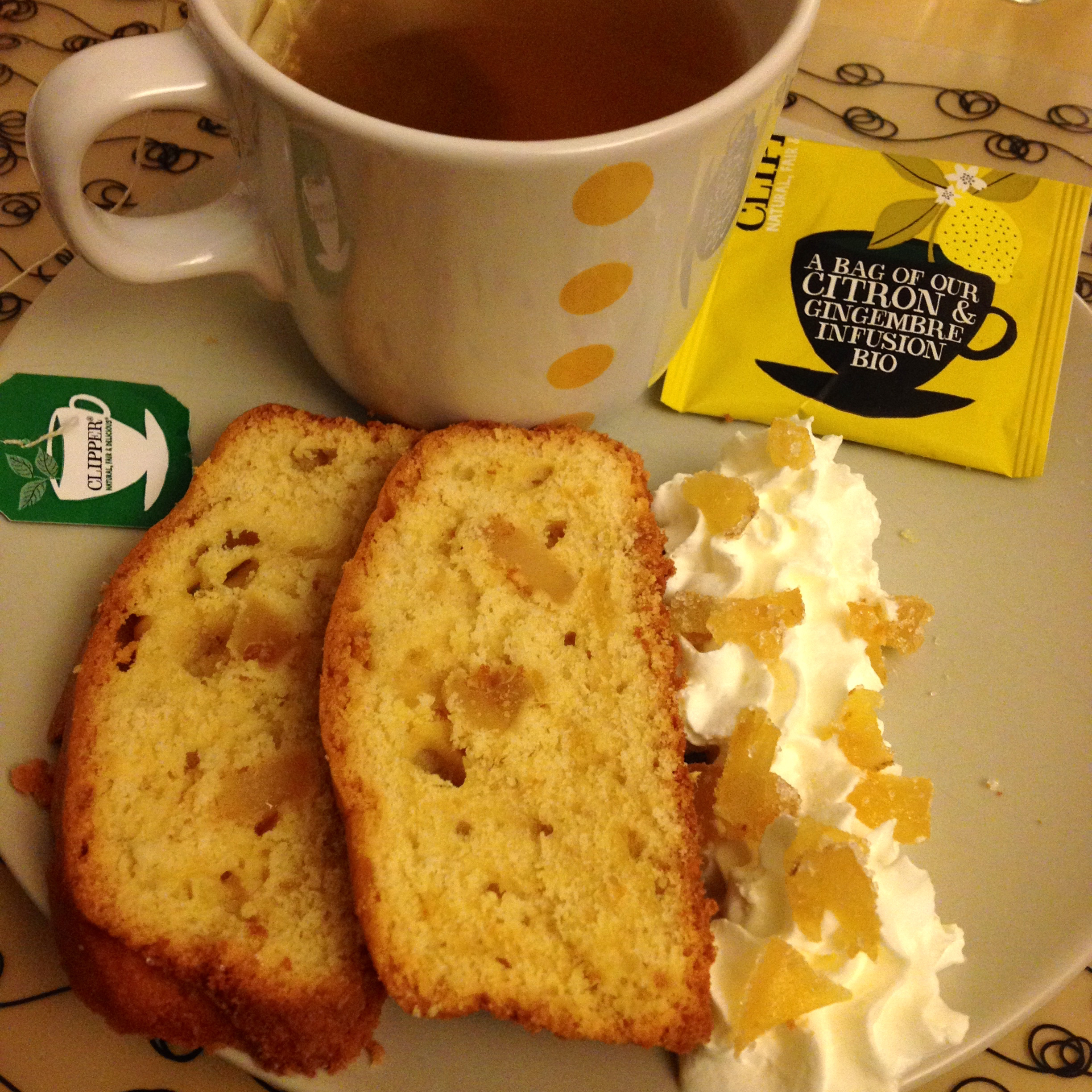 On obtient un cake doux et moelleux qui s’accompagne très bien avec une infusion Citron Gingembre de Clipper Tea, pour encore plus de gingembre!