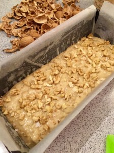 - Pour encore plus de noix (riche en omega 3, en minéraux et tout et tout..), on peut aussi en rajouter sur le dessus de la pâte avant d’enfourner (env. 8 noix)