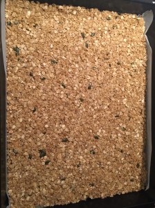 La dose est doublée par rapport à la recette originale, pour pouvoir utiliser la plaque de cuisson du four et obtenir environ 20 barres.
