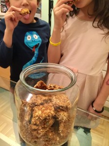 Mais voici une recette de barres de céréales, qui a convaincu tout le monde, tiré d’un livre nommé “les Desserts aux sucres naturels” qu’une bienveillante collègue m’a donné à Noël :-).