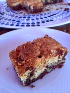 - Faire refroidir le gâteau sur une grille et couper en carrés (j’en fais 16 gros environ, plus facile à manipuler et plus à manger)