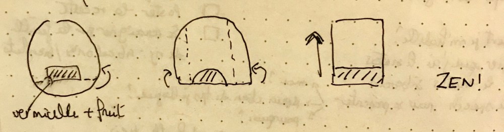 - Déposer une pincée de vermicelles au centre, en bas de la feuille, à un centimètre de chaque bord. On forme un petit rectangle.