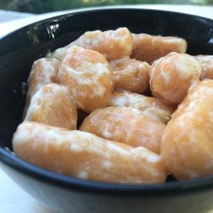 J’ai enfin essayé de faire des gnocchis maison et c’était une petite tuerie !!! Ils étaient fondants et moelleux à souhait. C’est le genre de recette à faire quand on a du temps (ou si comme moi, on se cherche une excuse pour ne pas commencer une tâche comme faire sa valise pour partir en vacances!). C’est aussi l’occasion de se mettre un petit challenge en cuisine !