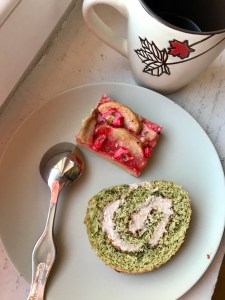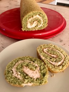 J’ai été inspirée par notre récent voyage au Japon 🇯🇵 , où j’ai découvert que les japonais étaient aussi fans de marrons! Comme nous avons ramené du thé vert matcha 🍵 en poudre dans nos valises, j’ai profité d’un anniversaire pour imaginer ce roulé doux, original et peu sucré, le tout sans lactose.