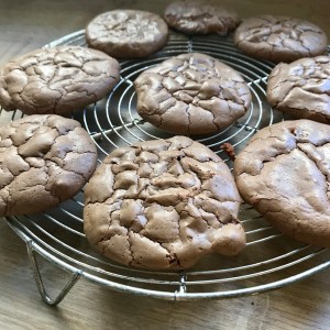 On avait déjà testé le Brookie de Guillemette qui est devenu un de nos goûters préférés à la maison: une pâte à brownie couvert d’une pâte à cookies. Cette fois, c’est des cookies à la texture de brownies. Ils ont été préparé et mangé par les enfants en moins de deux!