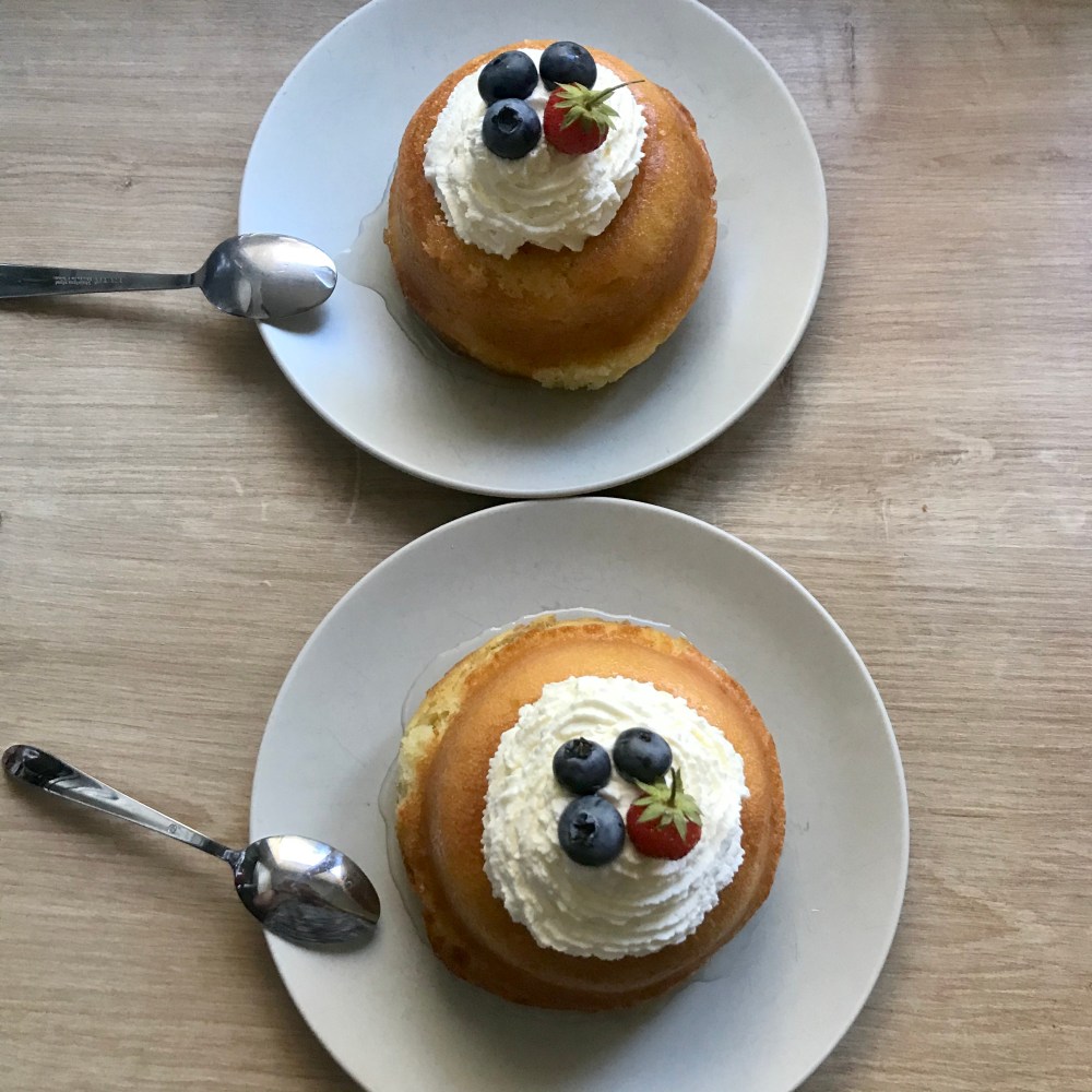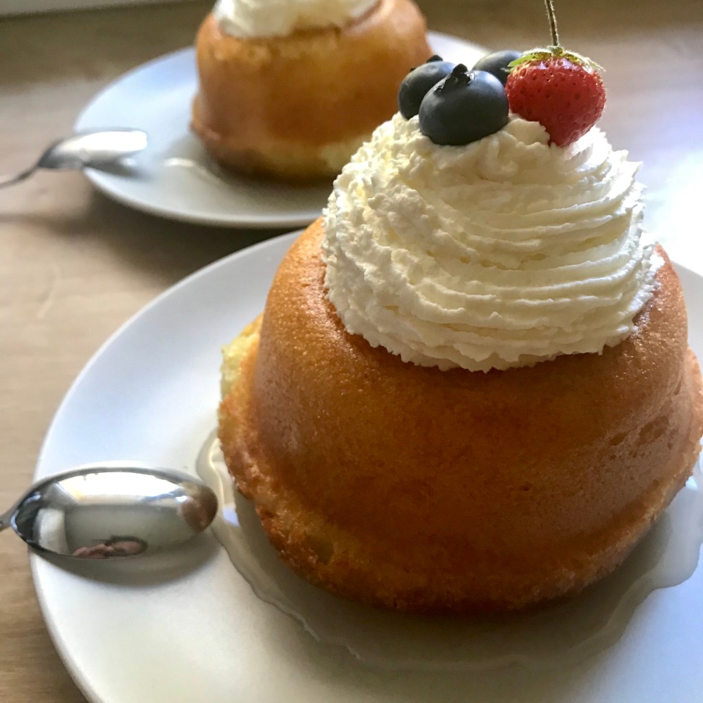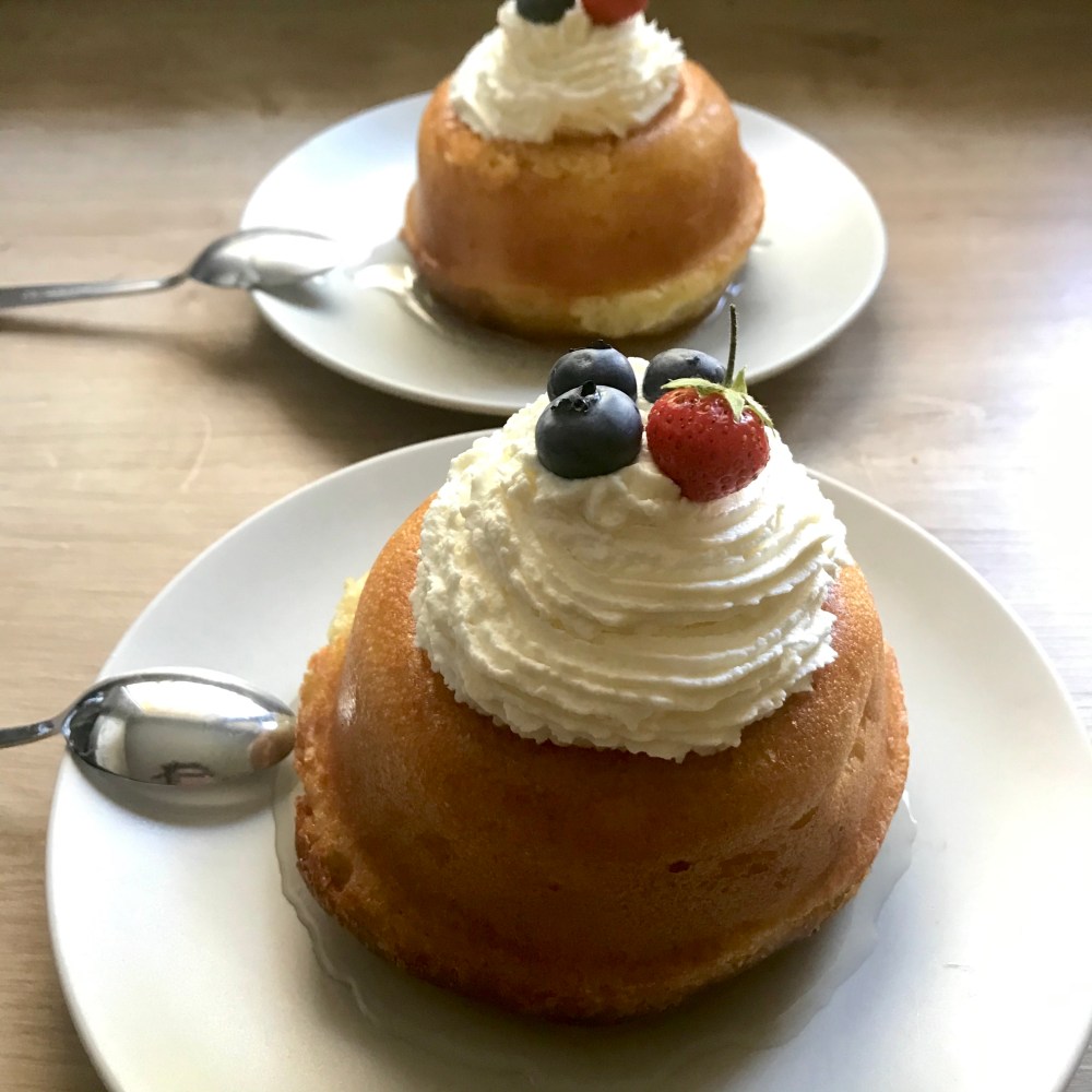 Le Baba au Rhum et moi, c’est une grande histoire d’amour, à la limite de l’obsession. Au resto, c’est le premier truc que je regarde à la carte. J’adore quand ils laissent la bouteille de rhum pour qu’on puisse en rajouter autant qu’on veut! Je ne l’avais tentée qu’une fois ado et n’avais jamais osé ressayer de peur d’être déçue. Mais je suis tombée sur des moules individuels à savarin dans la nouvelle boutique Muy Mucho à la Part-Dieu, c’était un signe :p. J’ai ensuite trouvé une super recette dans mon livre préféré de Guillemette, le Dessert des Jours Heureux. Résultat: des énormes Babas au Rhum, beaux et bien moelleux ❤