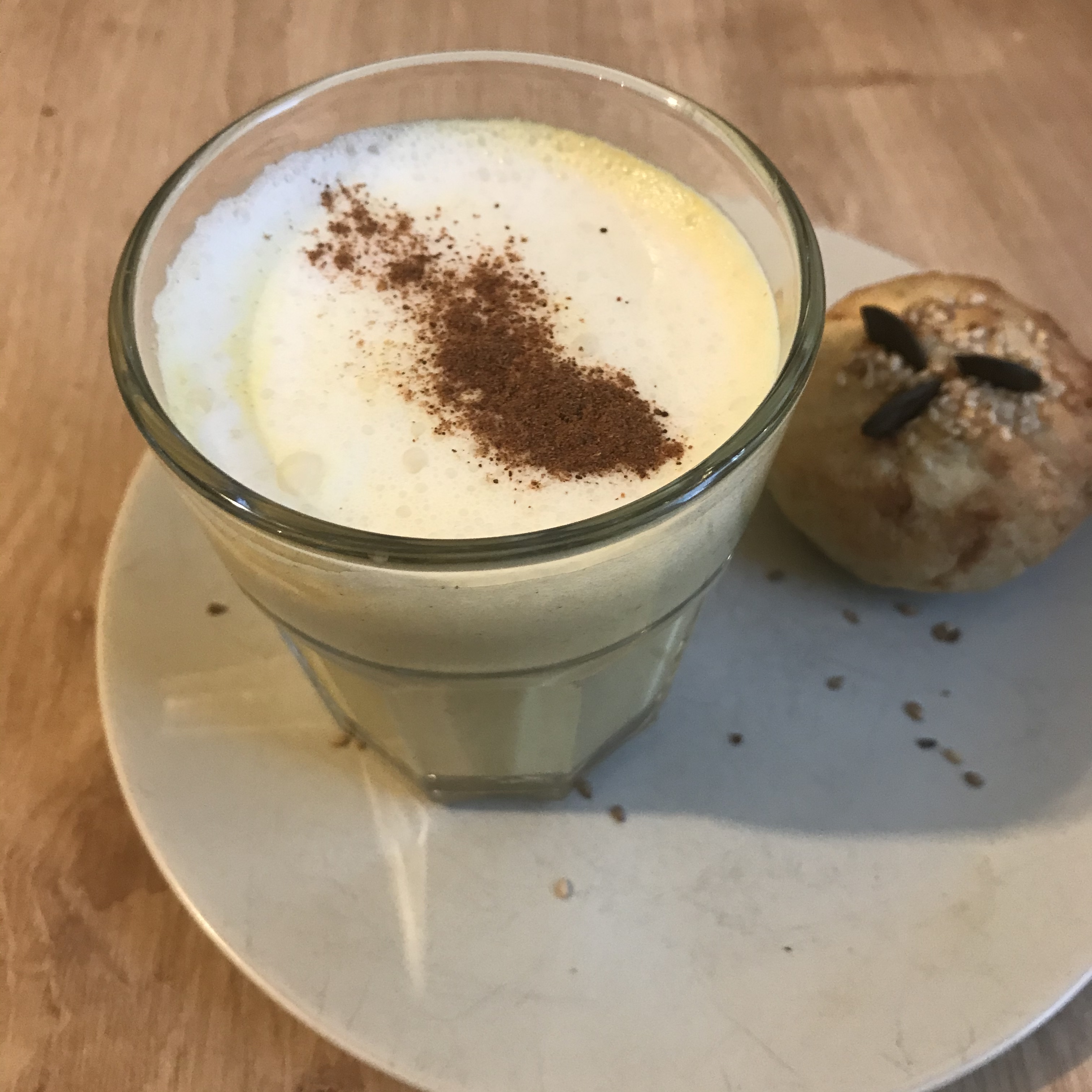 Il parait que c’est la boisson des Yogis! J’adore en préparer en ce moment, car le curcuma est réputé pour avoir des vertus anti-inflammatoires. Et en plus c’est savoureux, à la fois doux avec du lait de coco et relevé avec les épices. C’est une boisson que j’aime boire l’après-midi pour le goûter!