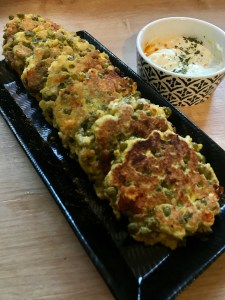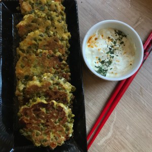 Ca fait un moment que cette idée de recette me trotte dans la tête: des petits pois, de la feta, ça doit forcément être bon! Ces galettes se préparent en un rien de temps et elles sont délicieuses à manger avec les doigts en les trempant dans la petite sauce au yaourt de brebis :p. Avec les beaux jours qui reviennent, je me dis que ces galettes aux petits pois seront parfaites pour le pique-nique ou l’apéro!