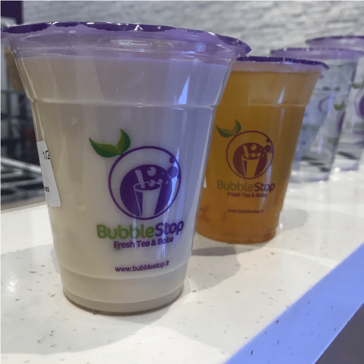 - Le moins cher: Bubble Stop, le bubble tea au taro sans sucre taille L 70 cl est à 4,90€. C’était un bon rapport qualité prix.