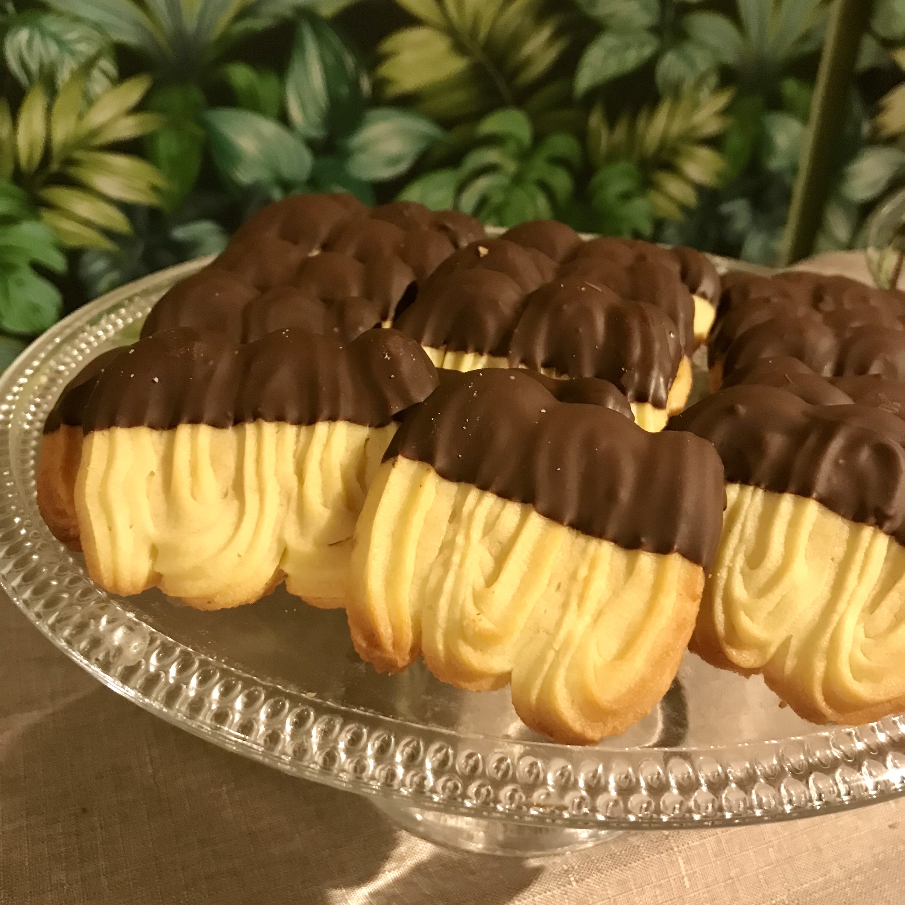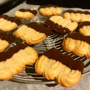 A ne pas confondre avec le cocktail Spritz :p Là je te parle des biscuits Sprits, à tenter à la maison pour te faire oublier (un peu) le biscuit industriel qui se défend quand même pas mal et reste un souvenir d’enfance. Il y a un petit coup de main à prendre avec la poche à douilles mais ça vaut le coup d’obtenir un joli sablé maison croustillant et chocolaté.