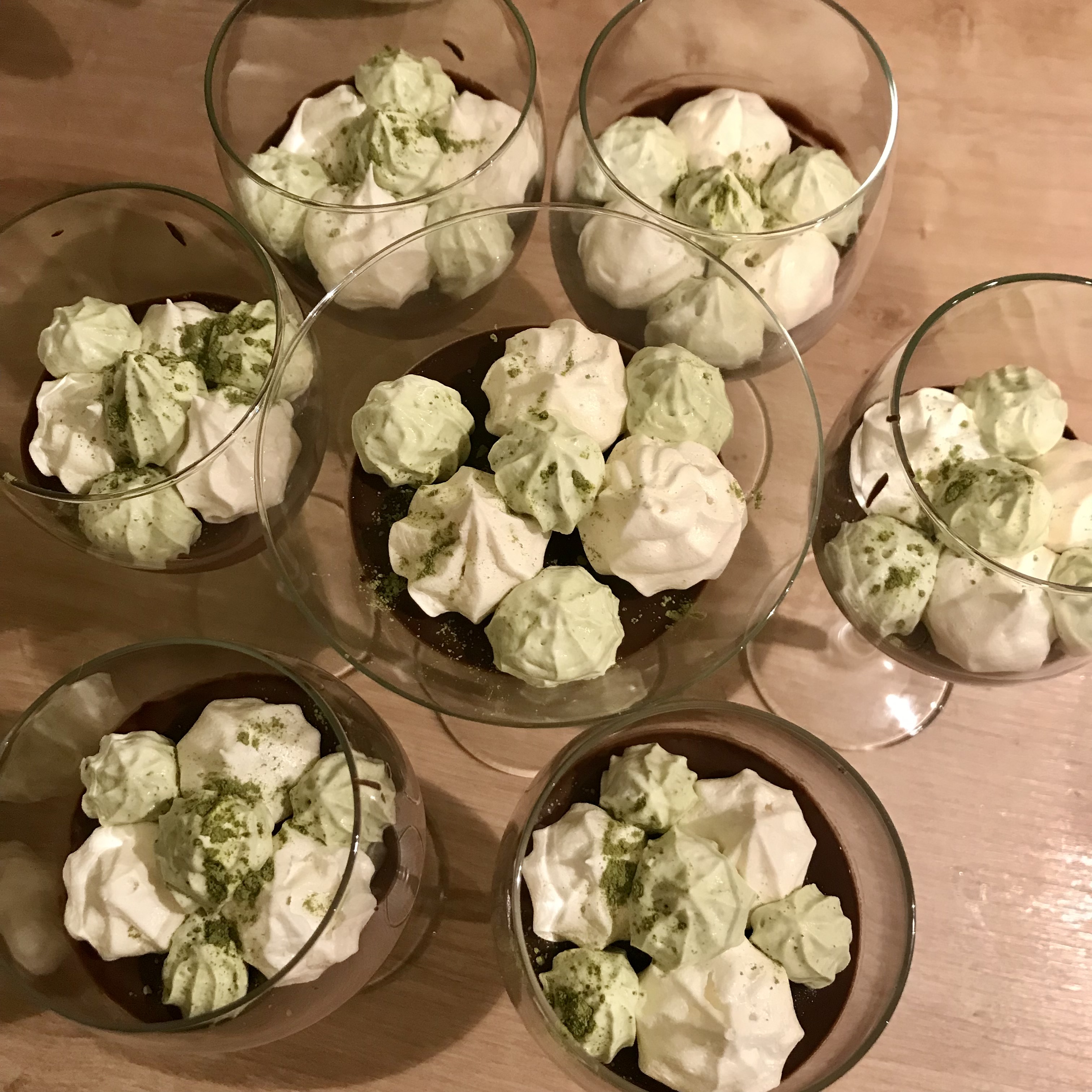 - Il ne reste qu’à décorer les crèmes au chocolat avec la chantilly et les meringues avant de servir!